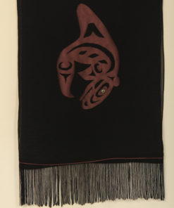 Crest designs of your choice are hand cut and applied onto sheer polyester scarf of approximately 64″ in length including fringe on both ends. Shell buttons and beads are added details.