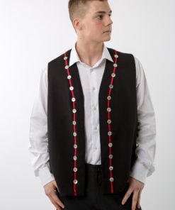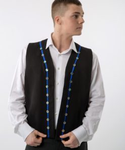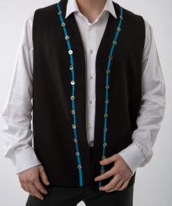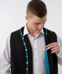 A classic and dressy style vest made in poly-viscose blend fabric.It is lined and trimmed with color satin fabric of your choice. Great for weddings and special occasions. Crests designs can be added for additional charge.