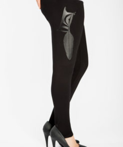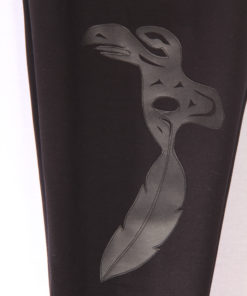 High-waisted fit legging in 4-way stretch fabric of viscose, nylon and spandex blend. Pleather crest of your choice is securely edge stitched onto both sides of the leg.