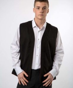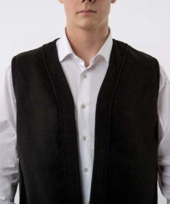 Unlined unisex melton vest is trimmed with inside color facings, choice of teal or burgundy. Customized crest designs available for eadditional charge.